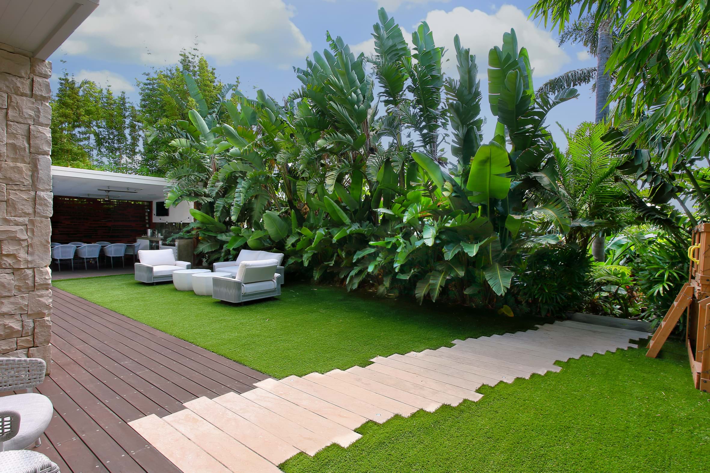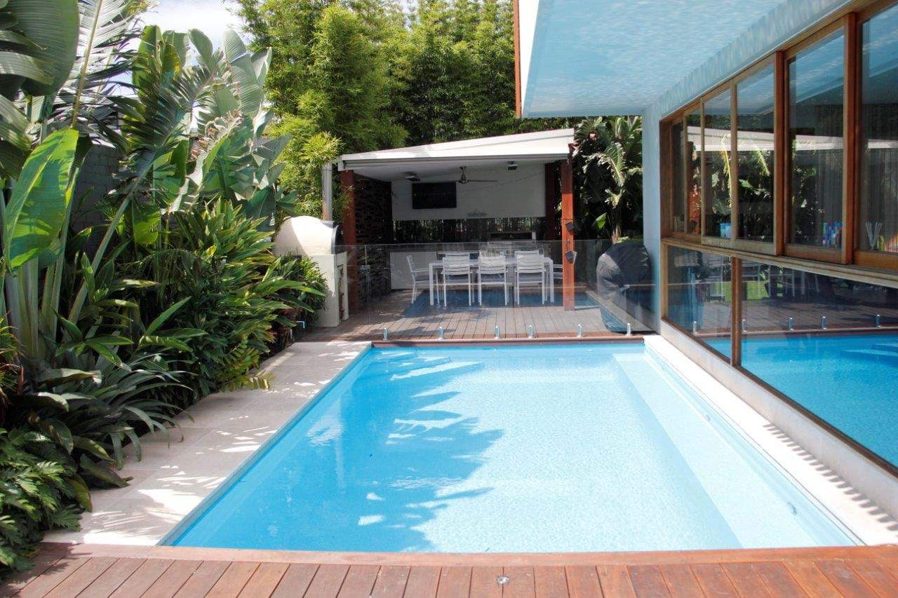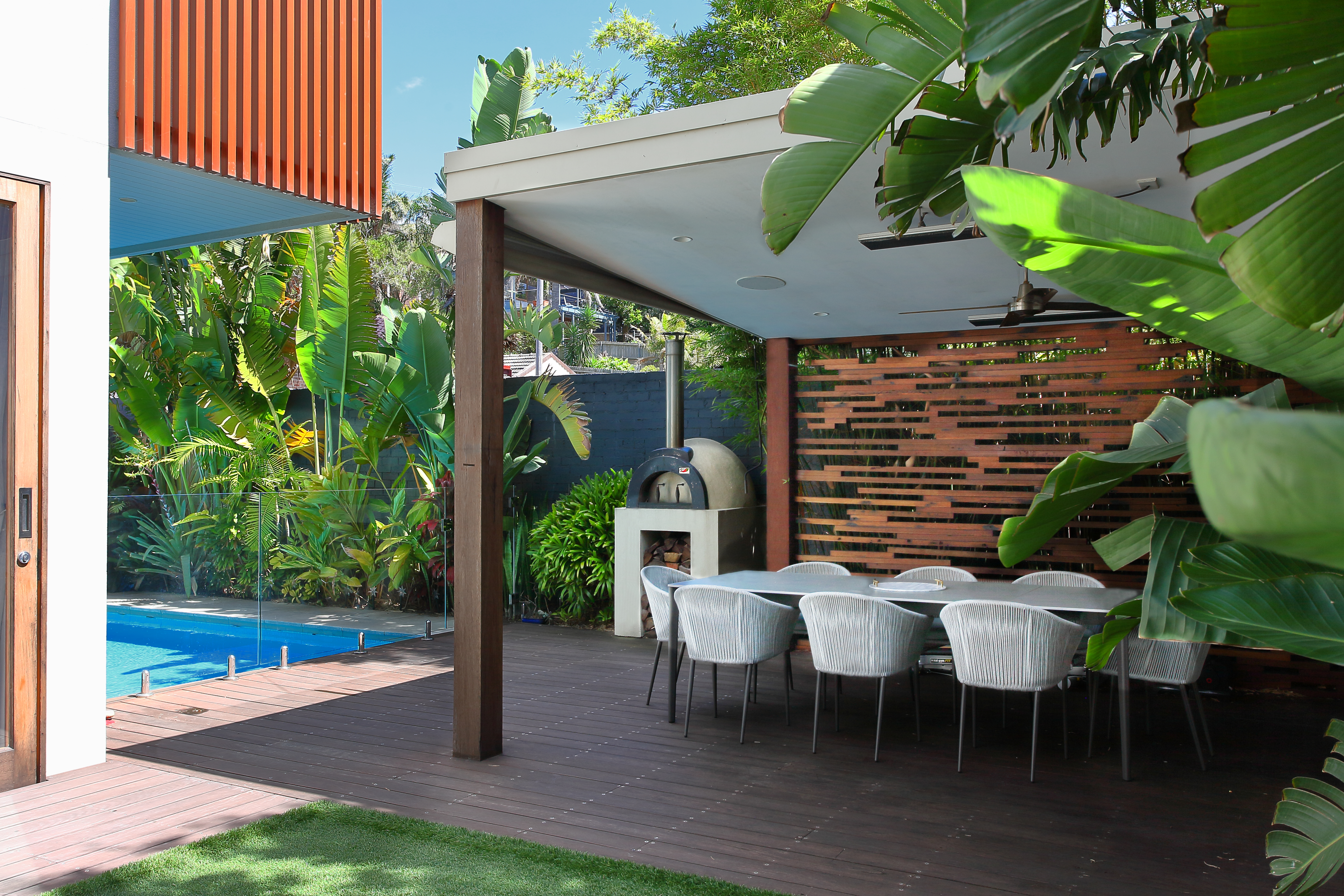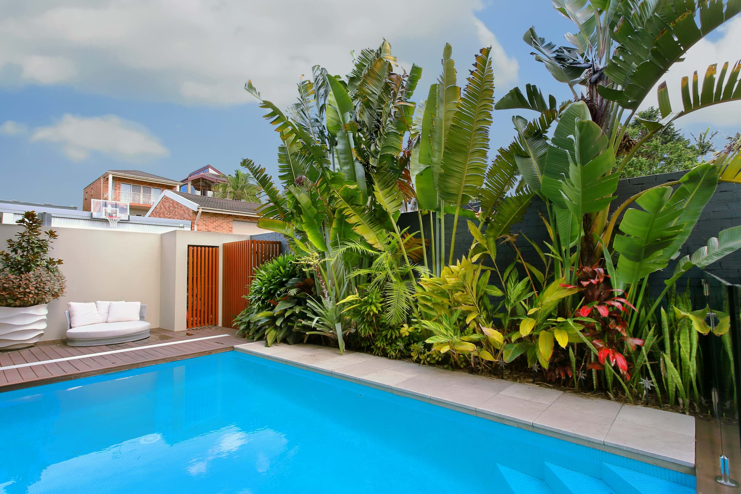This suburban block was transformed when a no longer used battle-axe driveway was turned into a resort-style tropical oasis. The garden features in the August 2021 edition of Outdoor Design.